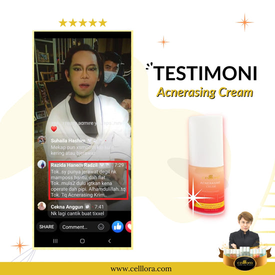 Moisturiser Kulit Berminyak, Kombinasi, Jerawat, Blackheads & Whiteheads: Acnerasing Cream Celllora | Teknologi Stem Cell CIGF