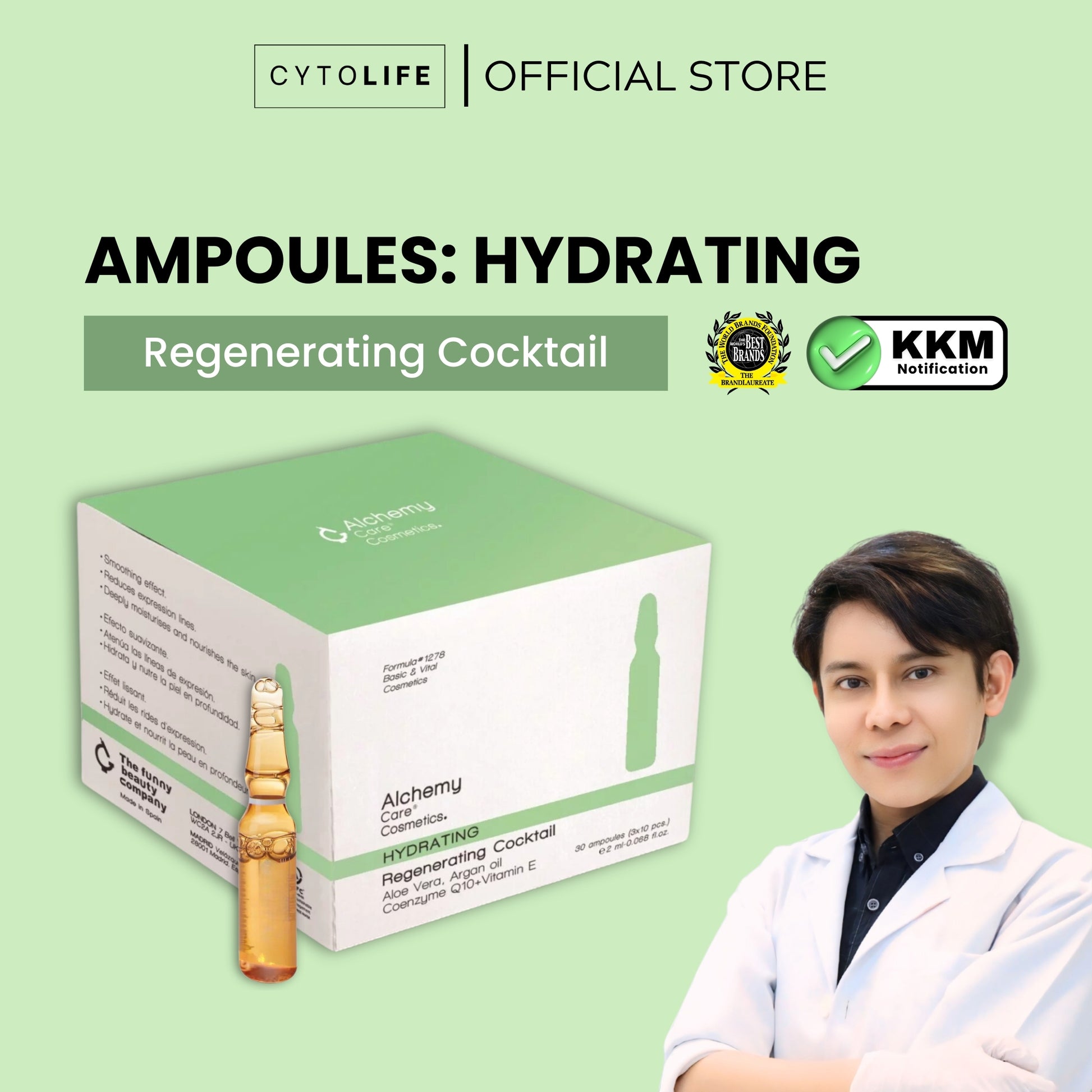 Alchemy Care Cosmetic: Ampul Antiaging Regenerating Cocktail - Aloe Vera, Argan Oil, Coenzyme Q10+Vitamin E Skincare