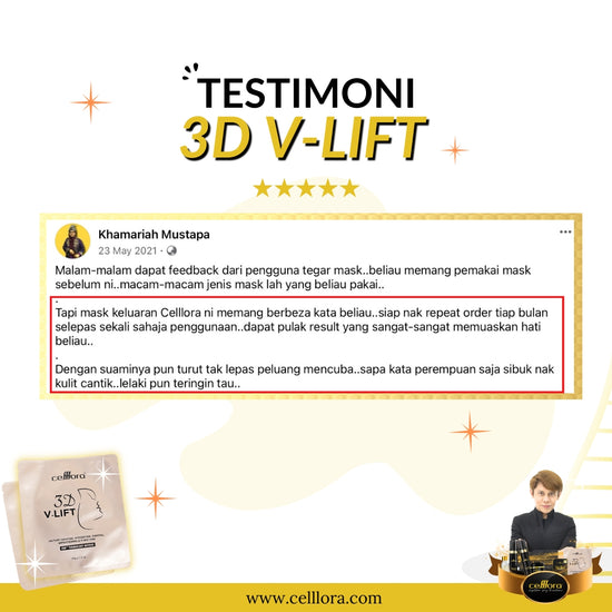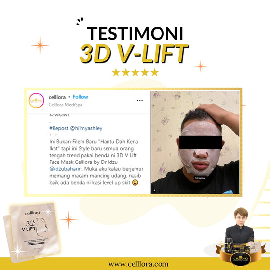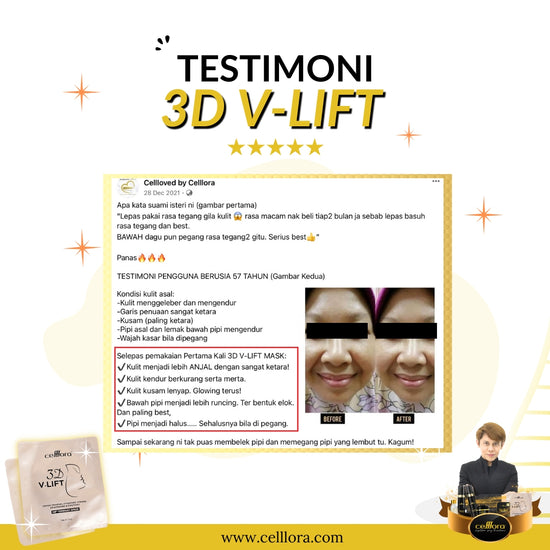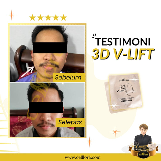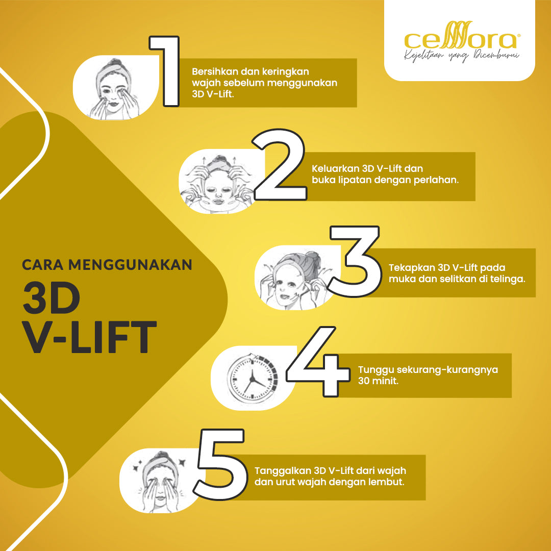 Mask 5 in 1 Gantung Kat Telinga: 3D V-LIFT Celllora | Teknologi Stem Cell CIGF, Sodium Hyaluronate, Glycerin