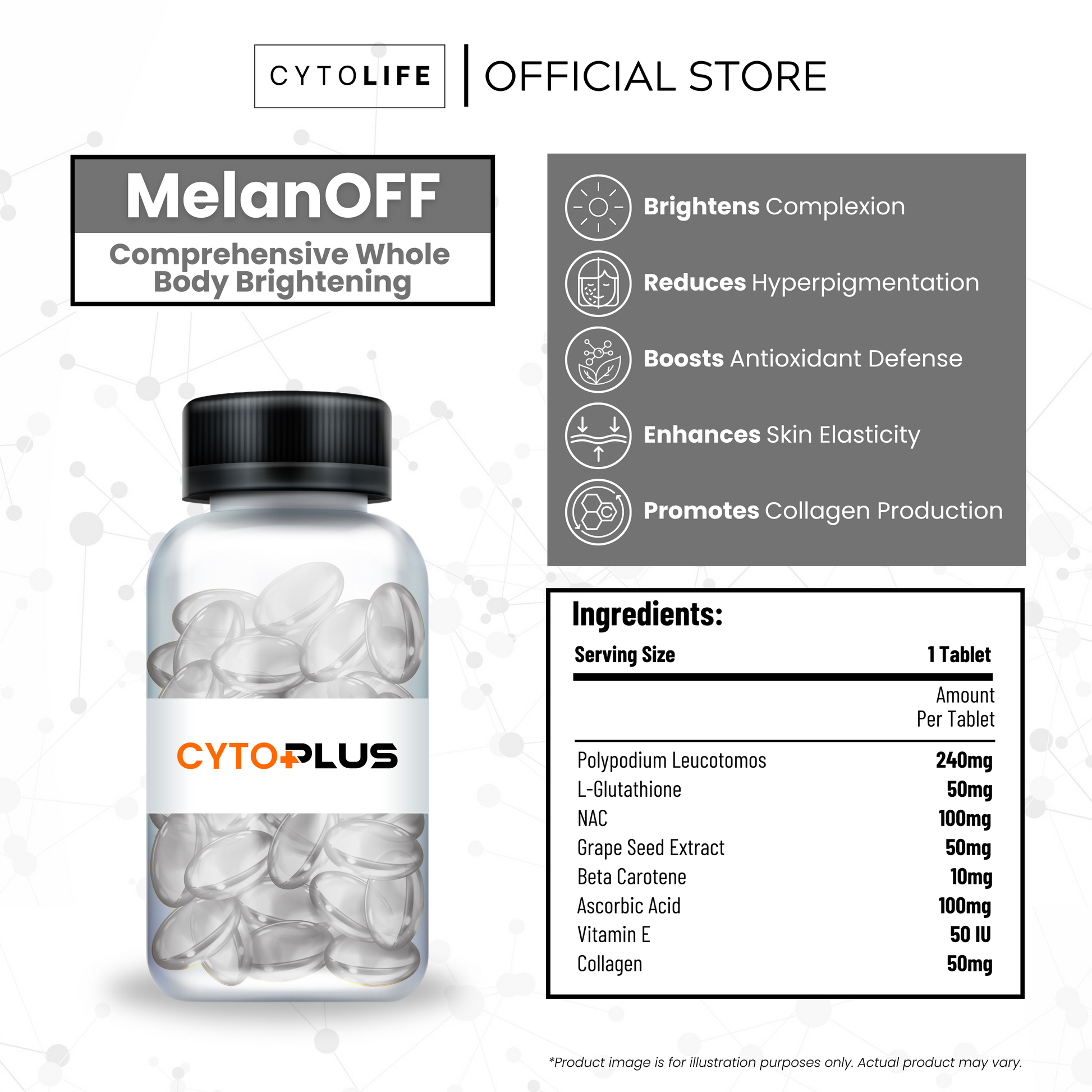 - Radiant Complexion is possible with CYTO PLUS as it promotes even skin tone, reduces pigmentation, and enhances your natural glow, resulting in a youthful and revitalized appearance.